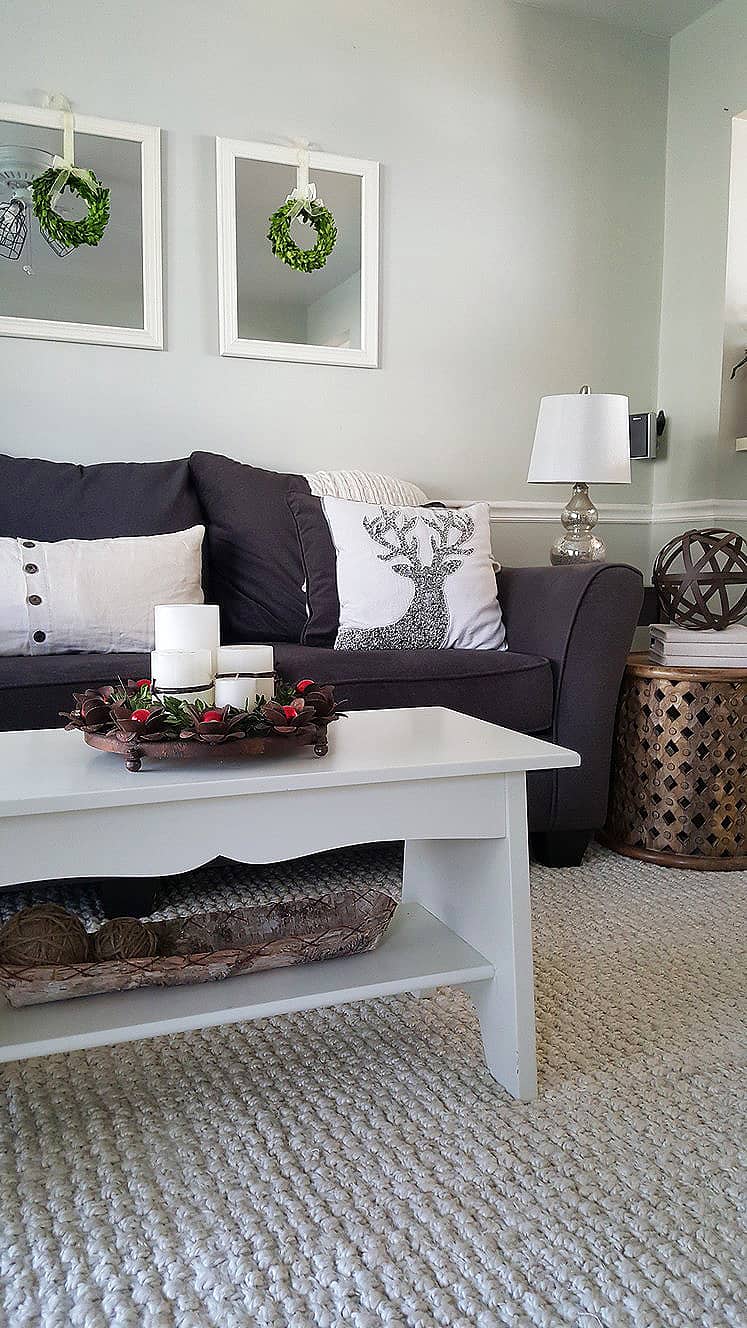 Lastly, I came across this framed wall art so I tried that on the board. Though that is more traditional, it also works to pull together this eclectic living room design.